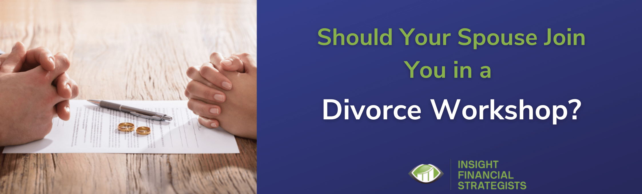 As a Financial Planner, I participate in many different types of workshops, including divorce. Pandemic obliging, these days they are usually webinars. Divorce is no exception. Should you suggest to your spouse that they should join you in a divorce workshop? Or do you want to keep the information that you got in a divorce workshop to yourself?